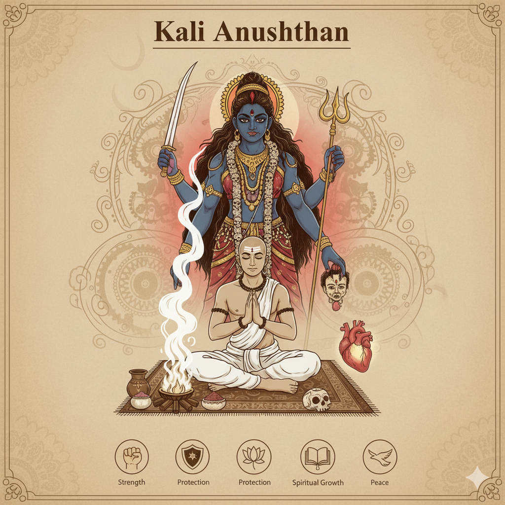 By performing an Anushthan with sincerity and devotion, one aligns with cosmic energies, attains mental peace, and welcomes positive transformation in life.