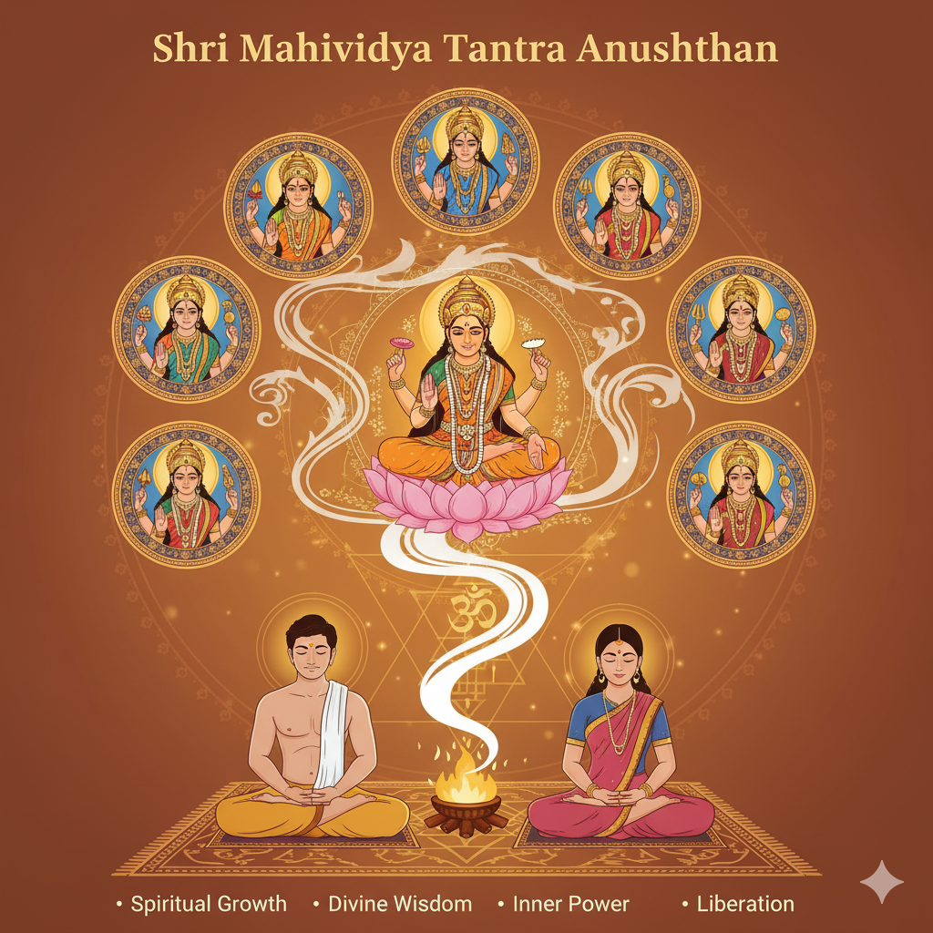 Derived from the Sanskrit roots ‘Anu’ (meaning continuous or constant) and ‘Sthana’ (meaning place), the term Anushthan signifies a disciplined, devoted practice performed at a specific place and time to invoke divine energies and spiritual transformation.